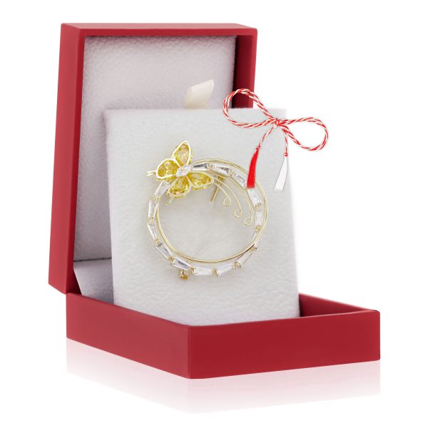 Broșă PREMIUM Gold Plated – Coroniță cu Fluturaș Galben