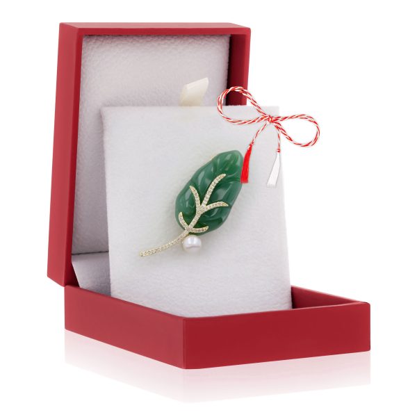 Broșă PREMIUM Gold Plated – Frunză Verde Stilizată