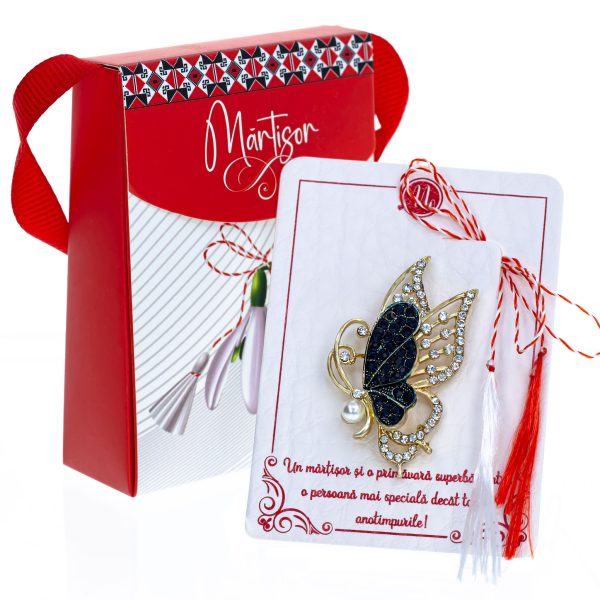 Broșă Mărțișor Gentuță – Fluture Auriu în Zbor