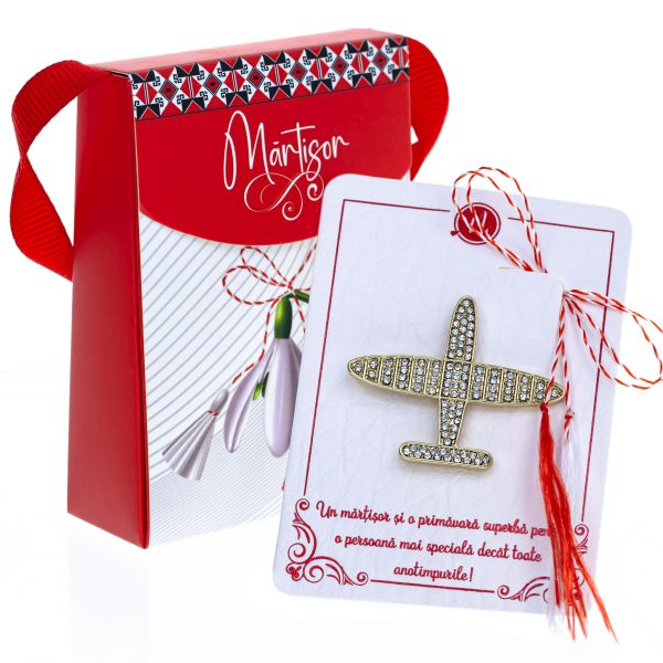 Broșă Mărțișor Gentuță – Avion Auriu cu Pietre Strălucitoare