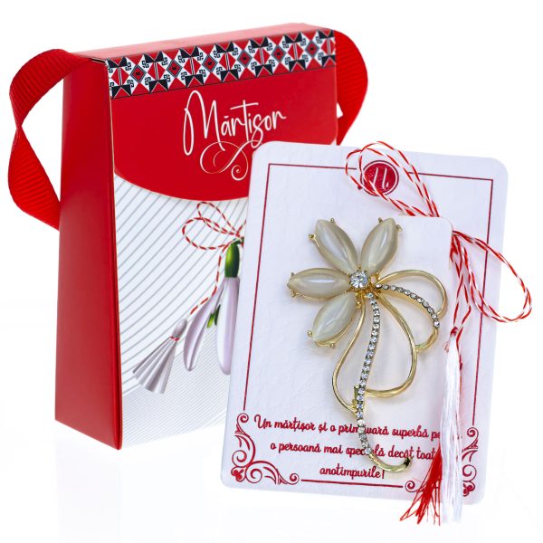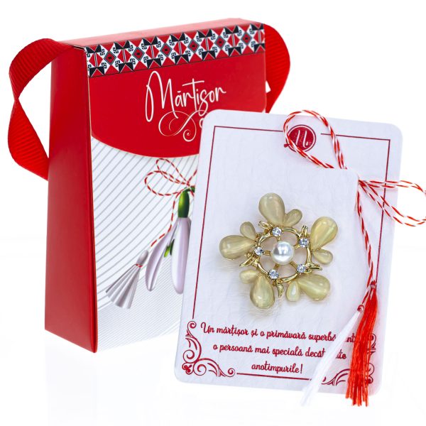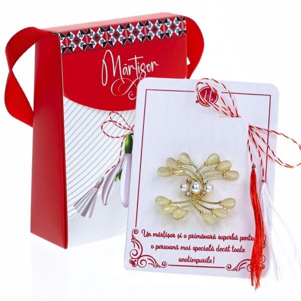 Broșă Mărțișor Gentuță – Cunună Aurie de Perle