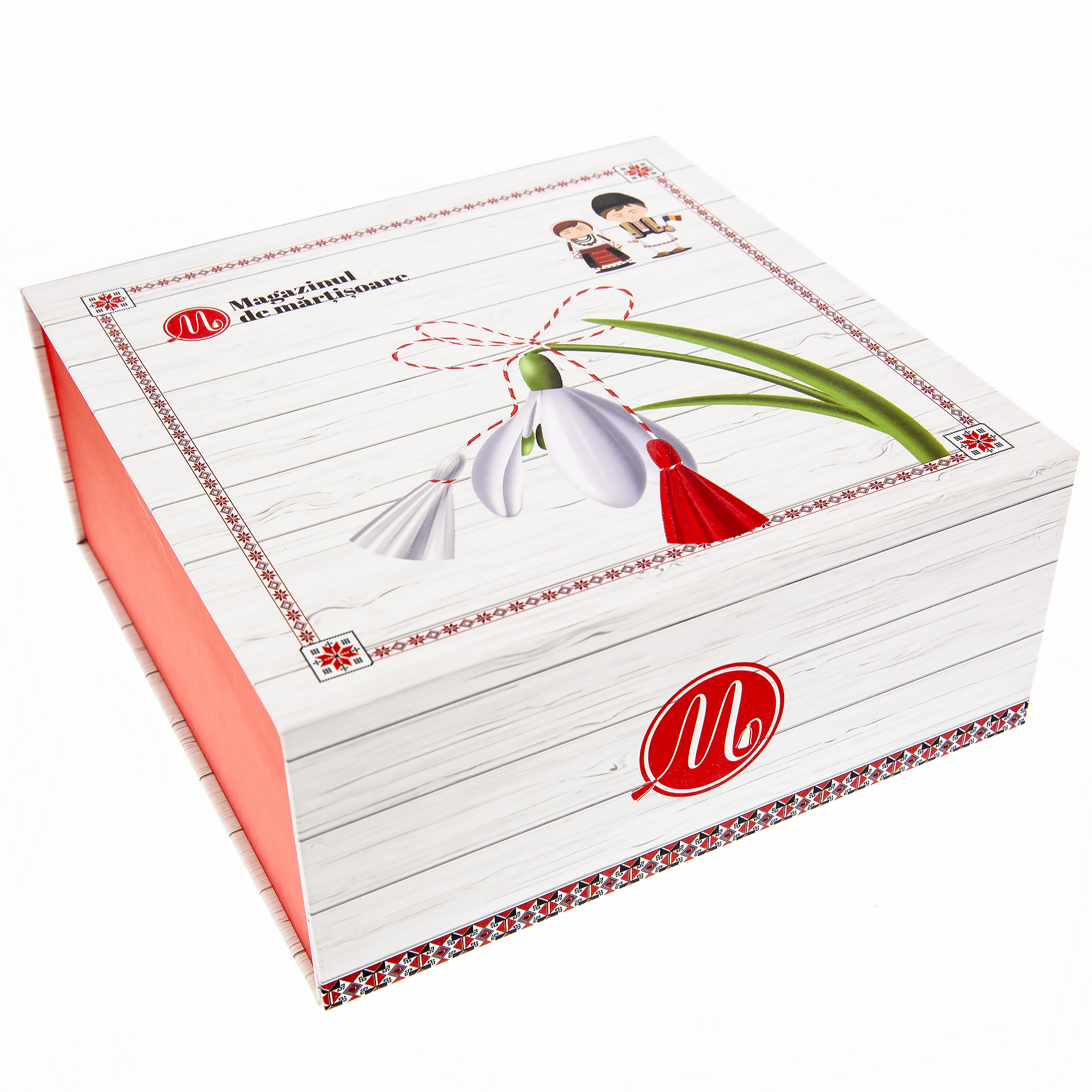 - Cutie Premium cu finisaje atent realizate, design tematic de primăvară și accente tradiționale. Dispune de închidere magnetică, oferind siguranță și o prezentare elegantă, potrivită pentru a pune în valoare conținutul.