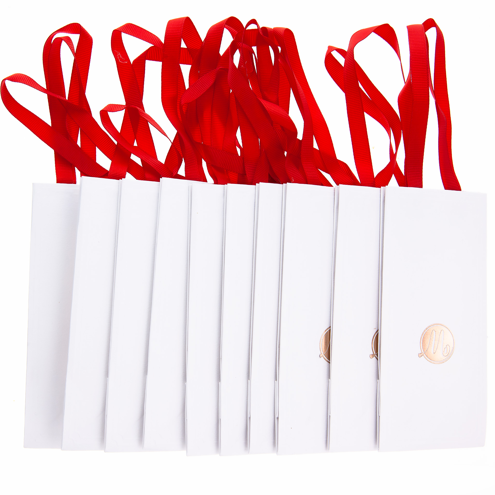- 12 Pungi Cadou: Pungile, cu mâner roșu sunt ideale pentru a oferi cadouri cu un aspect plăcut și atrăgător. Realizate din carton rezistent, adaugă un plus de prospețime și bucurie oricărui dar.
