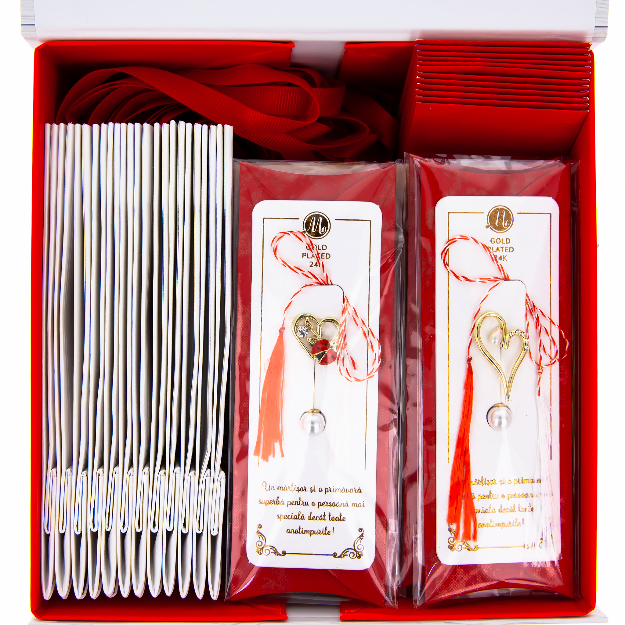 Box Mărțișoare 12 buc. – Broșă-Brățară Alb-Roșu Gold Plated Alpha