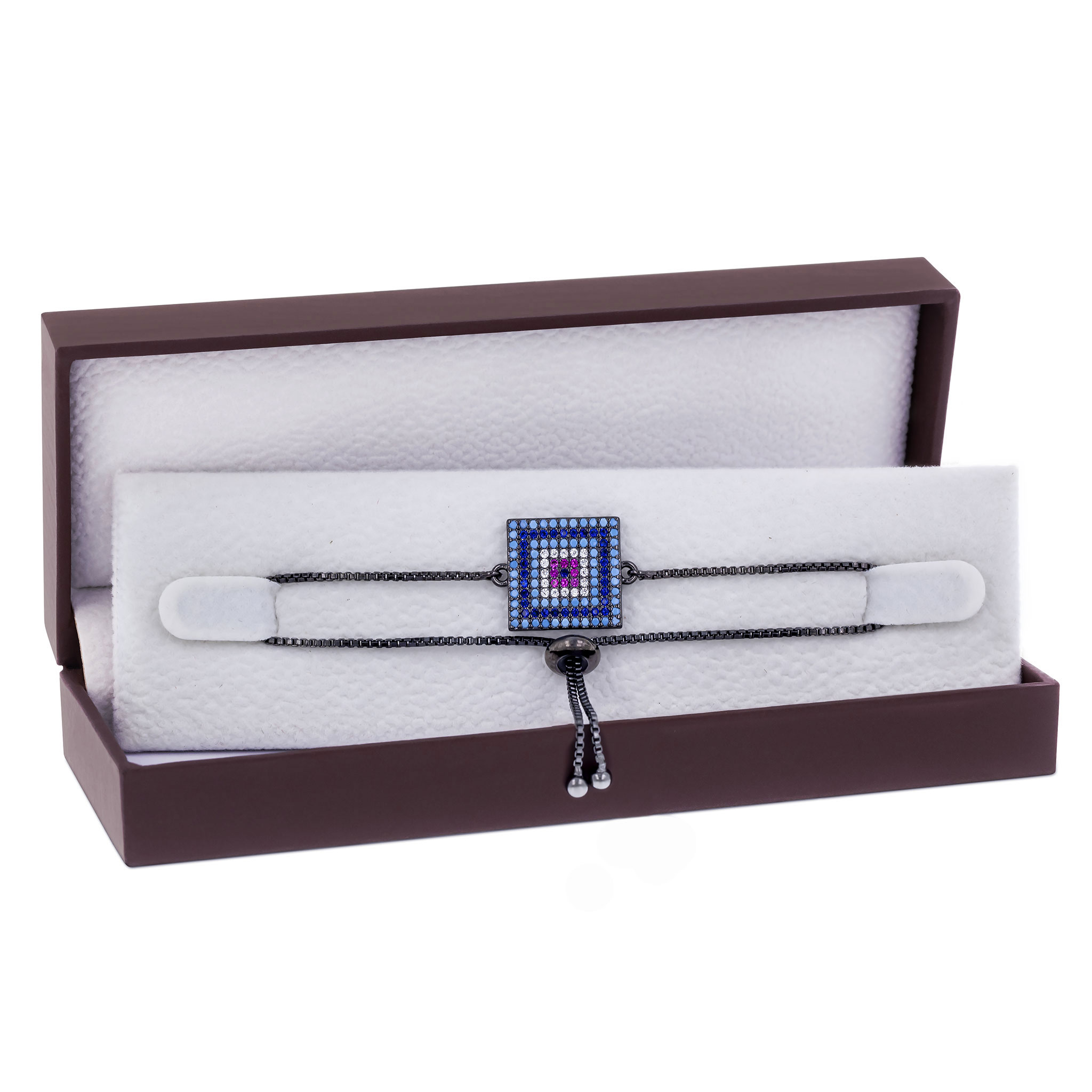 - Brățară Black cu lanț negru, charm pătrat colorat, ambalată pe suport de brățară și casetă, pungă cadou si plic roșu cu mesaj, pregătită cu grijă pentru a fi oferită drept un cadou special, simbol al celor mai frumoase intenții și sentimente.