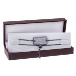 - Rodiul negru adaugă nuanțe intense și profunde, creând un contrast plăcut cu strălucirea pietrelor argintii. Această alegere cromatică face ca brățara să devină un simbol al strălucirii și al misterului.