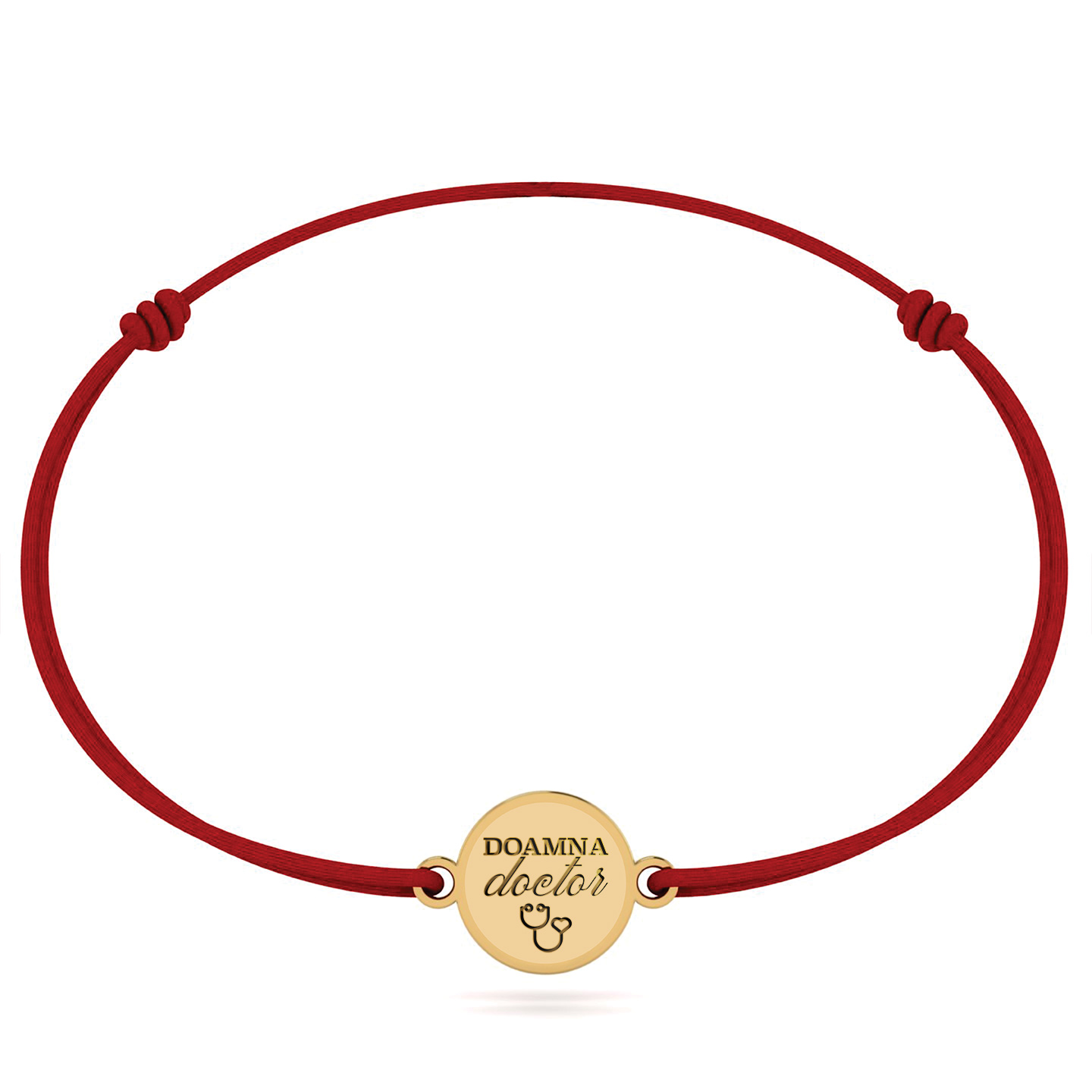 - Material: Fir textil roșu, charm inox auriu gold plated;