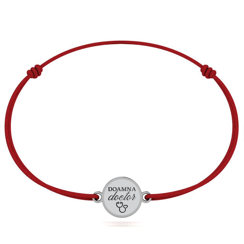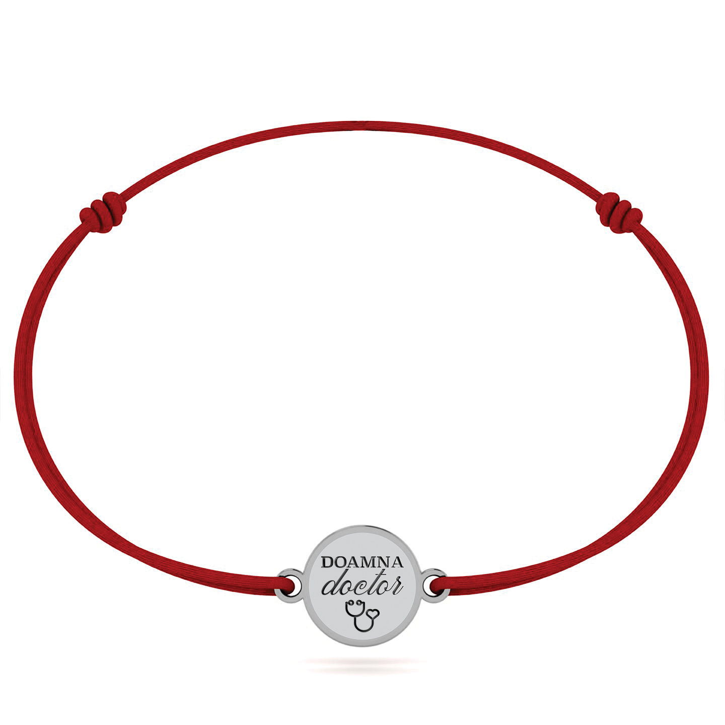 - Material: Fir textil roșu, charm inox argintiu palladium white;