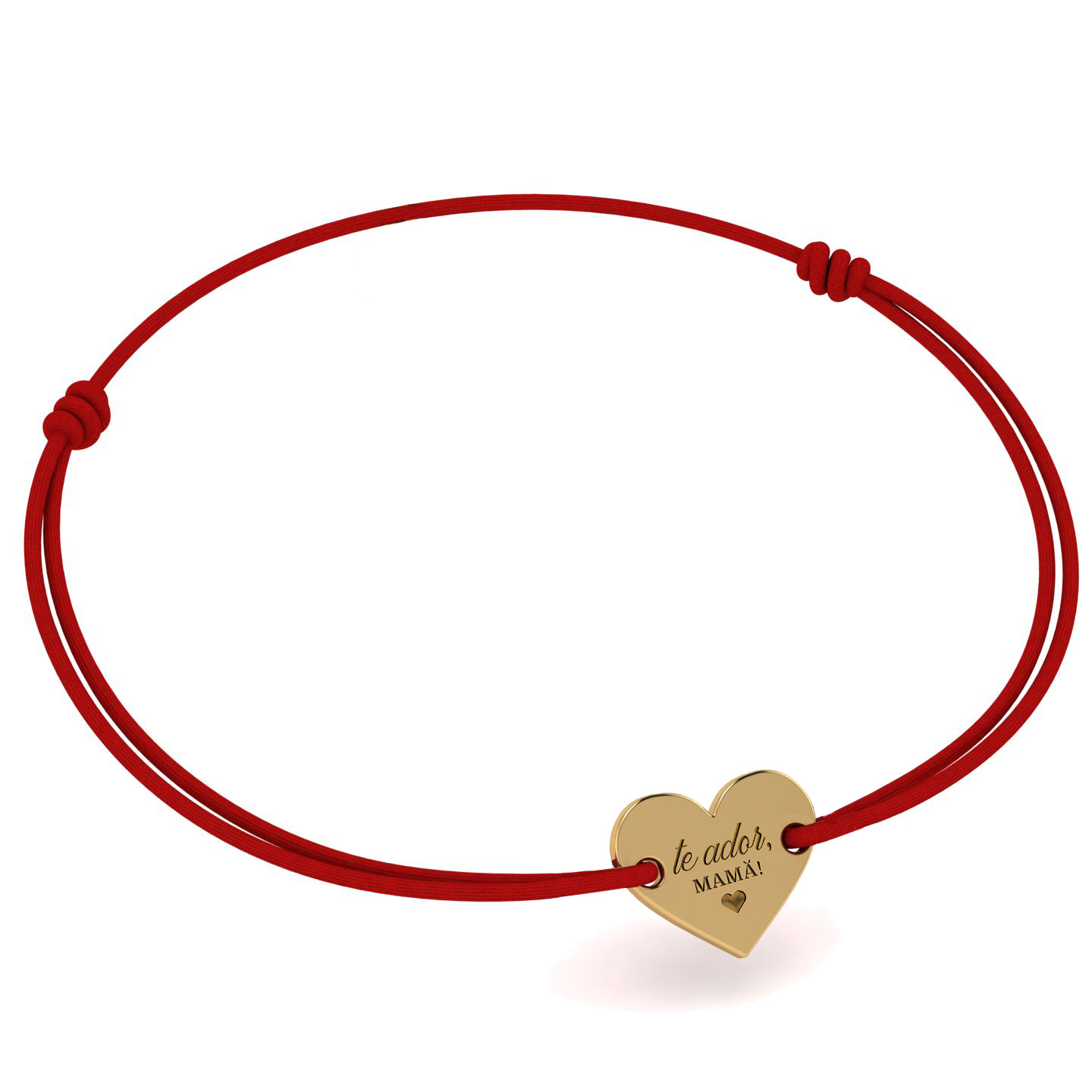 Brățara cu charm gold plated în formă de inimă, gravată cu mesaj este cadoul perfect. Firul textil roșu este simbolul legăturii puternice, iar gravarea cu mesaj face această brățară o amintire specială, un cadou plin de semnificație pentru persoana dragă.