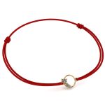 - Material: Fir textil roșu, charm inox gold plated în formă de cerc cu pietricele;