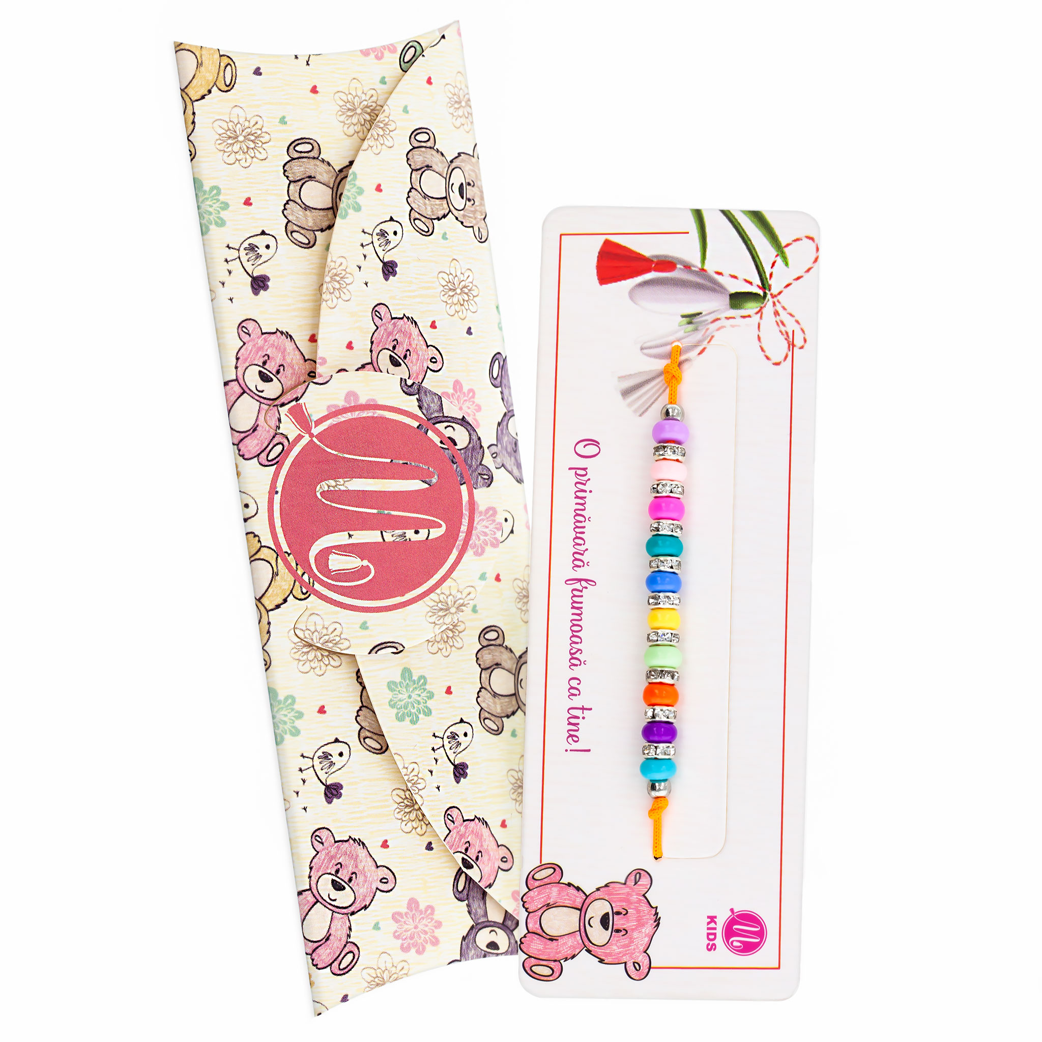 - Pandantiv Biluțe Colorate: Biluțele în diferite culori sunt o alegere veselă și plină de semnificație. Fiecare culoare reprezintă o energie diferită, iar combinația lor armonioasă adaugă un efect deosebit brățării. Acestea simbolizează diversitatea și frumusețea vieții.