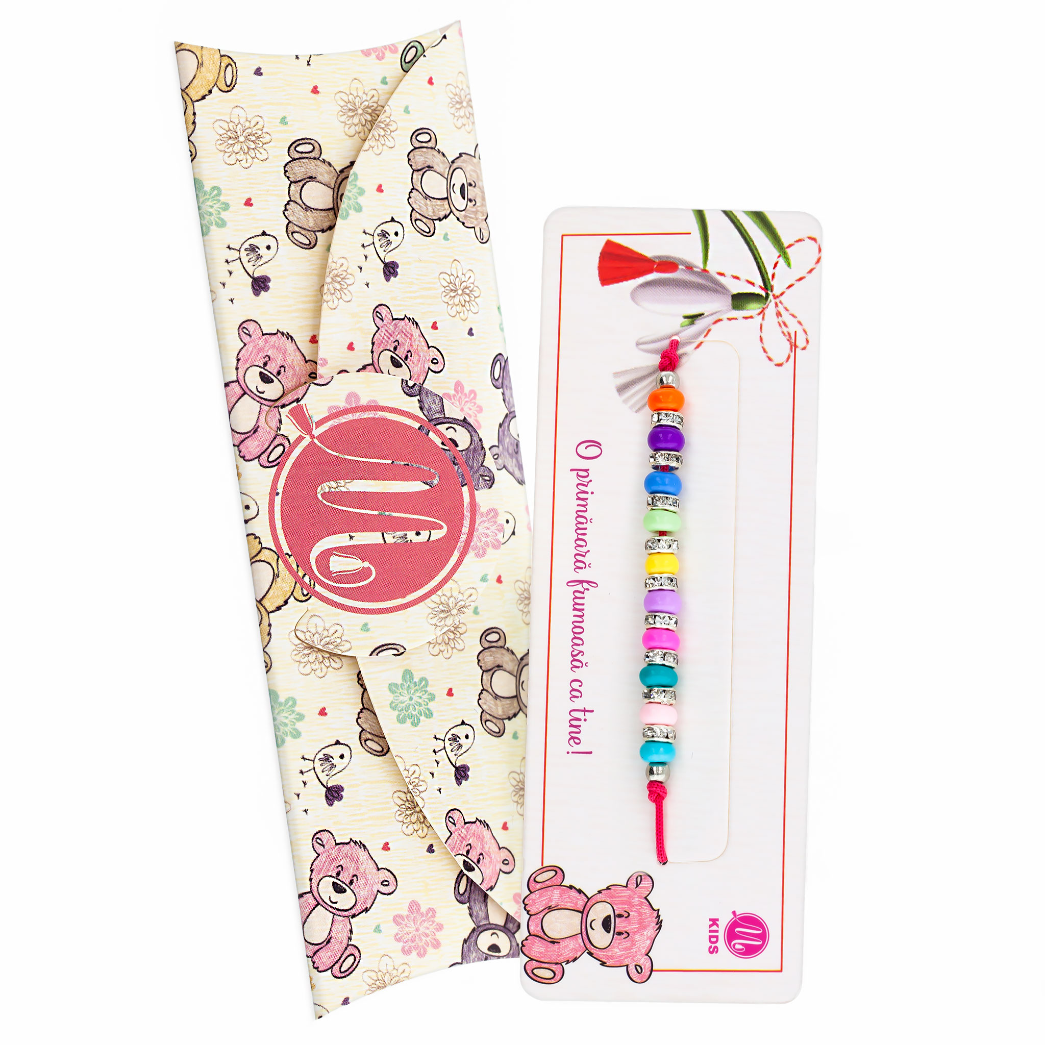 - Pandantiv Biluțe Colorate: Biluțele în diferite culori sunt o alegere veselă și plină de semnificație. Fiecare culoare reprezintă o energie diferită, iar combinația lor armonioasă adaugă un efect deosebit brățării. Acestea simbolizează diversitatea și frumusețea vieții.