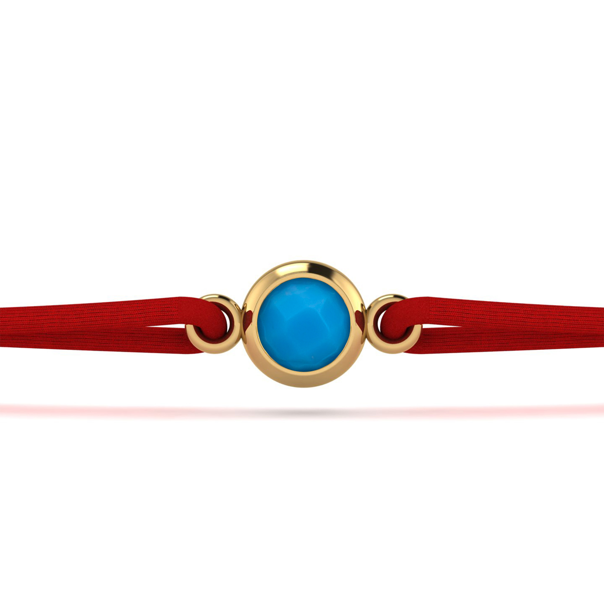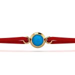 Brățara cu fir textil roșu aduce protecție și vitalitate. Charm-ul gold plated oferă strălucire, iar cristalul Blue Turquoise simbolizează calm și echilibru interior. Este un accesoriu delicat, potrivit pentru a fi purtat zilnic sau la evenimente speciale.