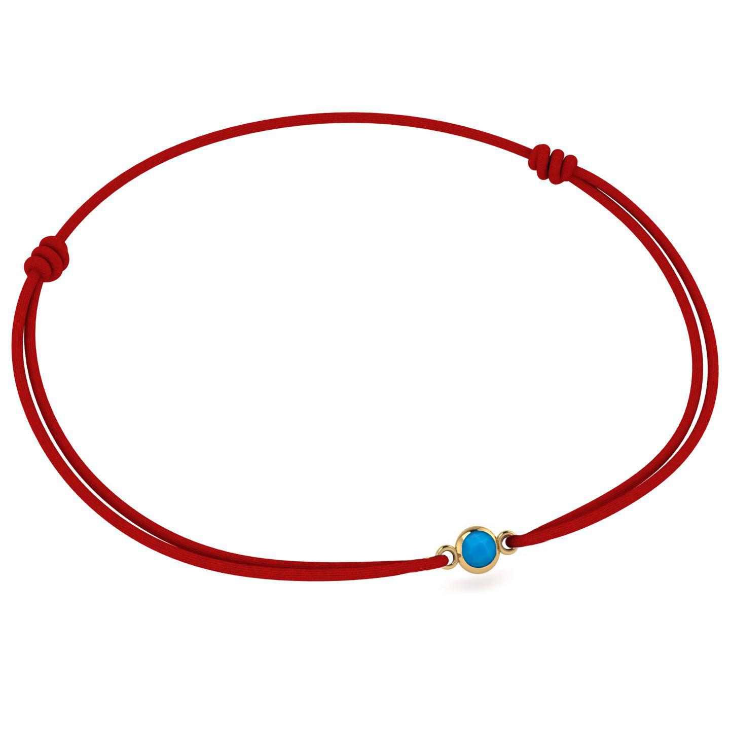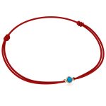 - Material: Fir textil roșu, charm auriu gold plated, cristal Blue Turquoise.