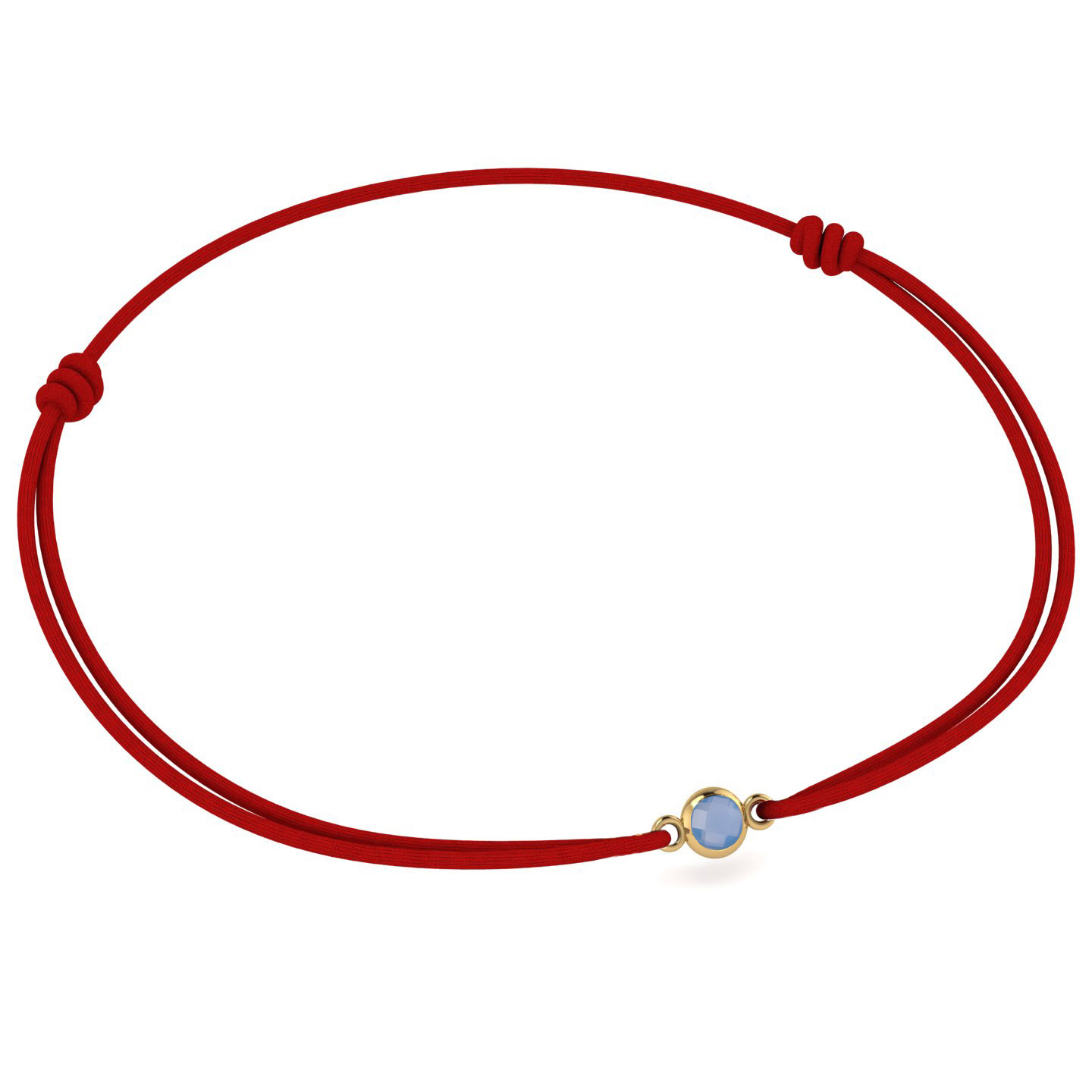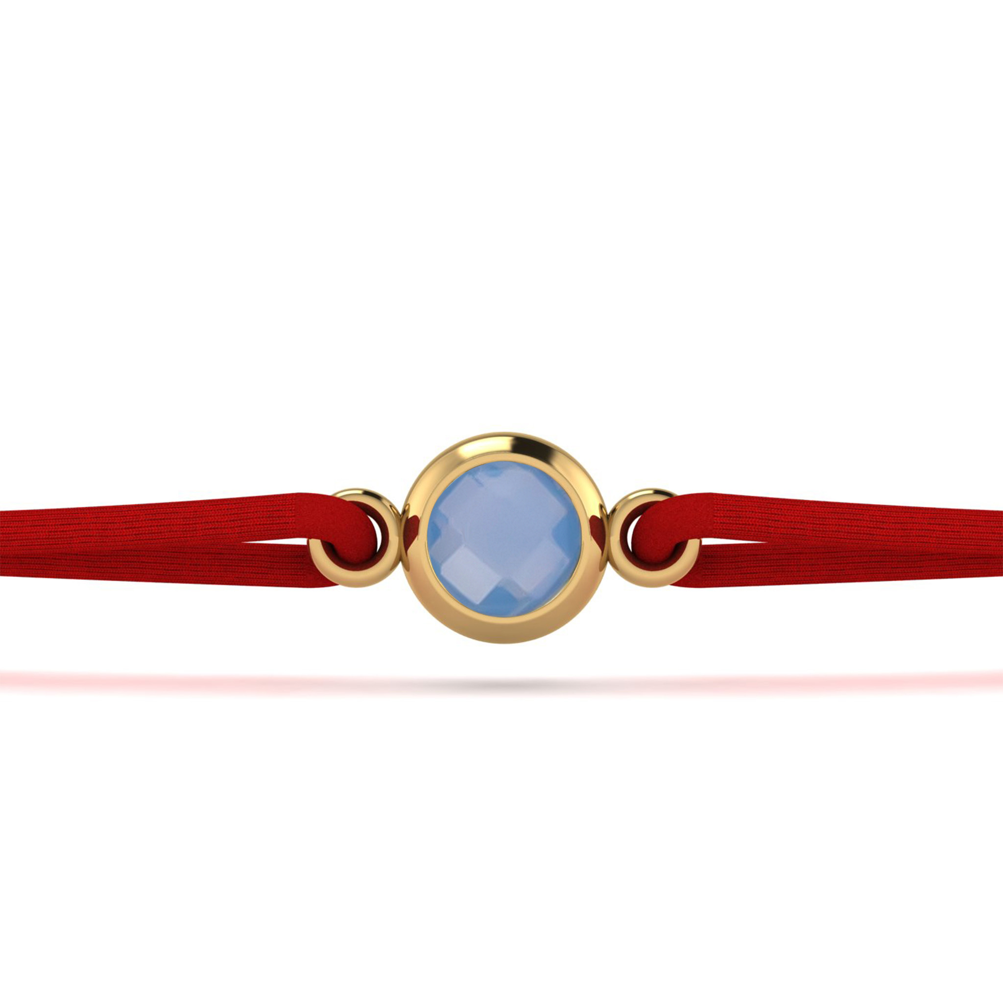 - Material: Fir textil roșu, charm auriu gold plated, cristal Caribbean Blue Opal.