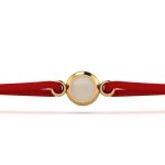 - Material: Fir textil roșu, charm auriu gold plated, cristal Jade.