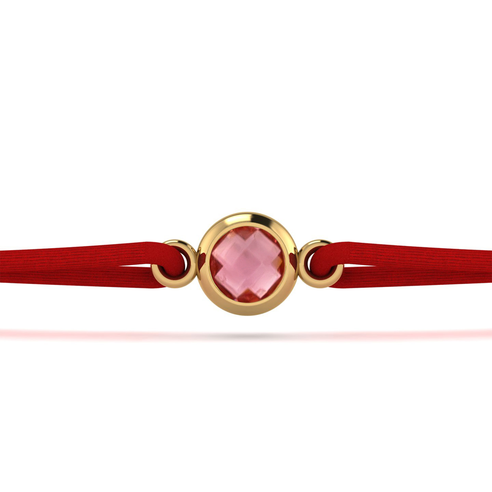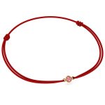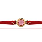 - Material: Fir textil roșu, charm auriu gold plated, cristal Rose.