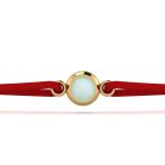 Brățara cu fir textil roșu păstrează tradiția și simbolizează protecția și energia. Charm-ul gold plated adaugă un detaliu elegant, iar cristalul Sand Opal inspiră calm și armonie. Este un accesoriu delicat, potrivit pentru a fi purtat zilnic sau la ocazii speciale.