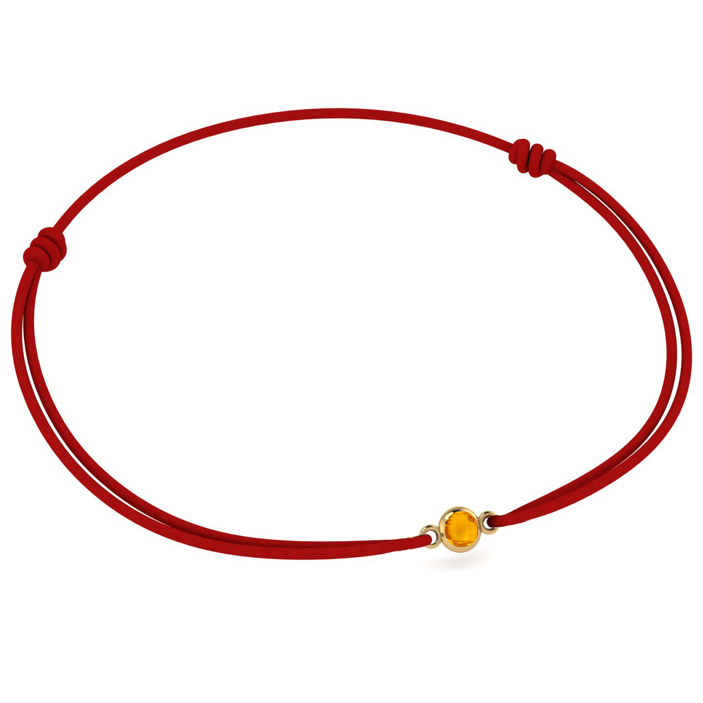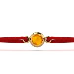 - Material: Fir textil roșu, charm auriu gold plated, cristal Topaz.