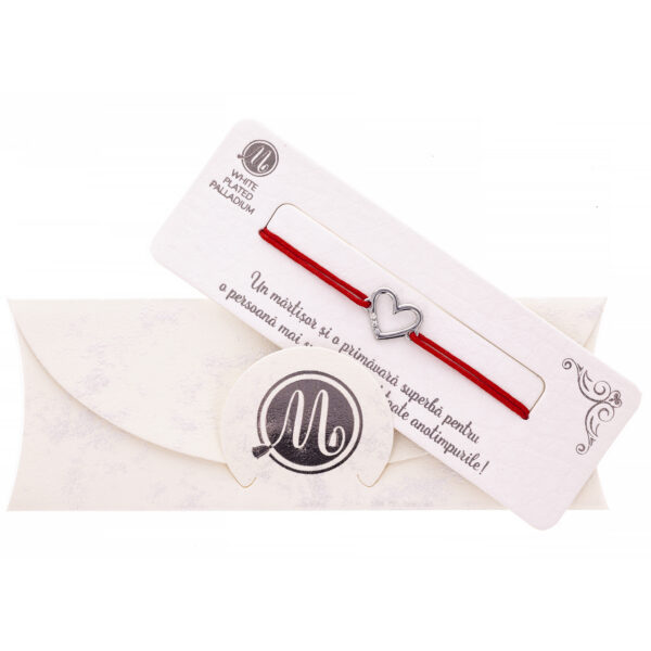 Brățară Șnur Roșu Alpha White Palladium Inimă