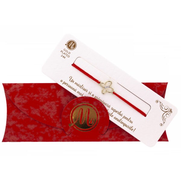 Brățară Șnur Roșu Alpha Gold Plated Fluture
