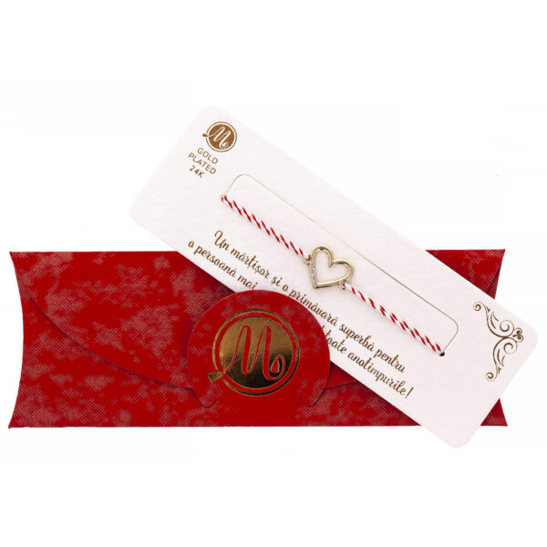 - Fir Textil Roșu: Firul textil roșu vibrant aduce un omagiu tradiției Mărțișorului și simbolizează pasiunea și vitalitatea. Este o notă festivă și vibrantă care completează designul general al brățării.