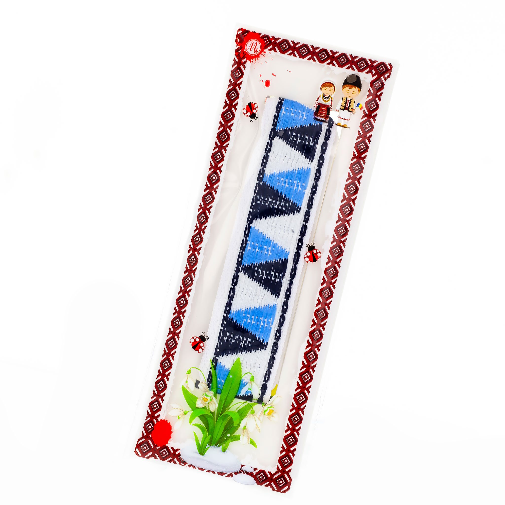 - Brățară Textilă – Model Albastru, Alb și Negru, ambalată pe suport de carton și plic OPP, pregătită cu grijă pentru a fi oferită drept o expresie simplă și elegantă a afecțiunii sau prieteniei.