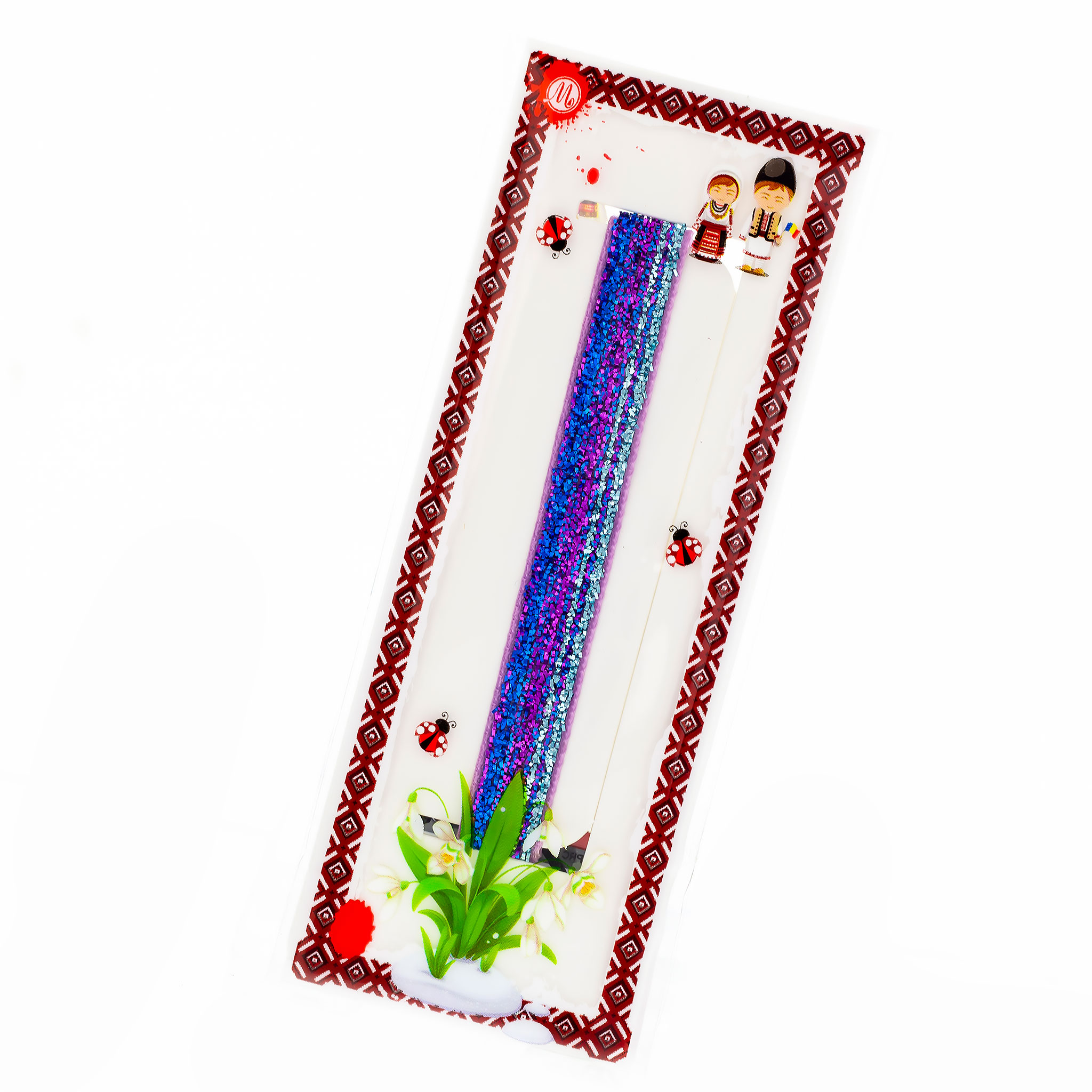 - Brățară Textilă – Model Albastru cu Sclipici, ambalată pe suport de carton și plic OPP, pregătită cu grijă pentru a fi oferită drept o expresie simplă și elegantă a afecțiunii sau prieteniei.