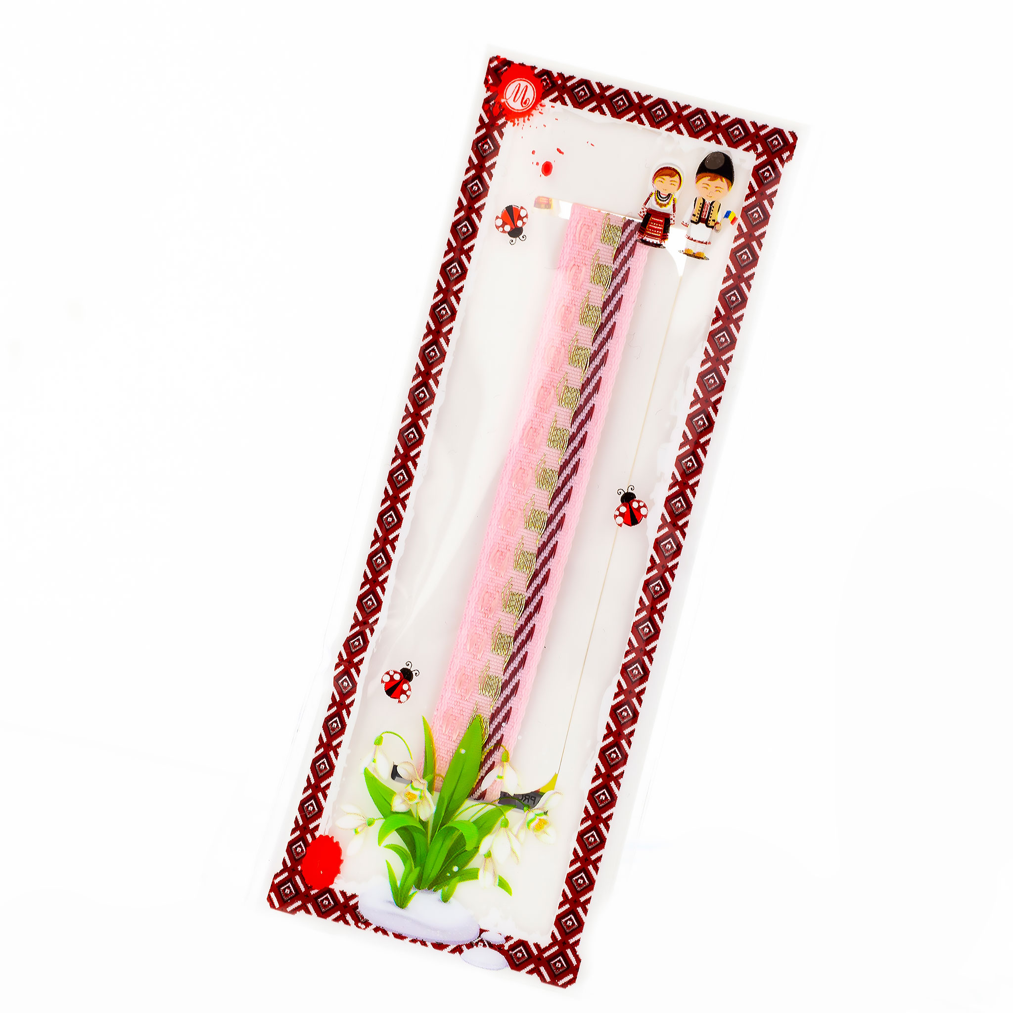 - Brățară Textilă – Model Auriu cu Roz, ambalată pe suport de carton și plic OPP, pregătită cu grijă pentru a fi oferită drept o expresie simplă și elegantă a afecțiunii sau prieteniei.