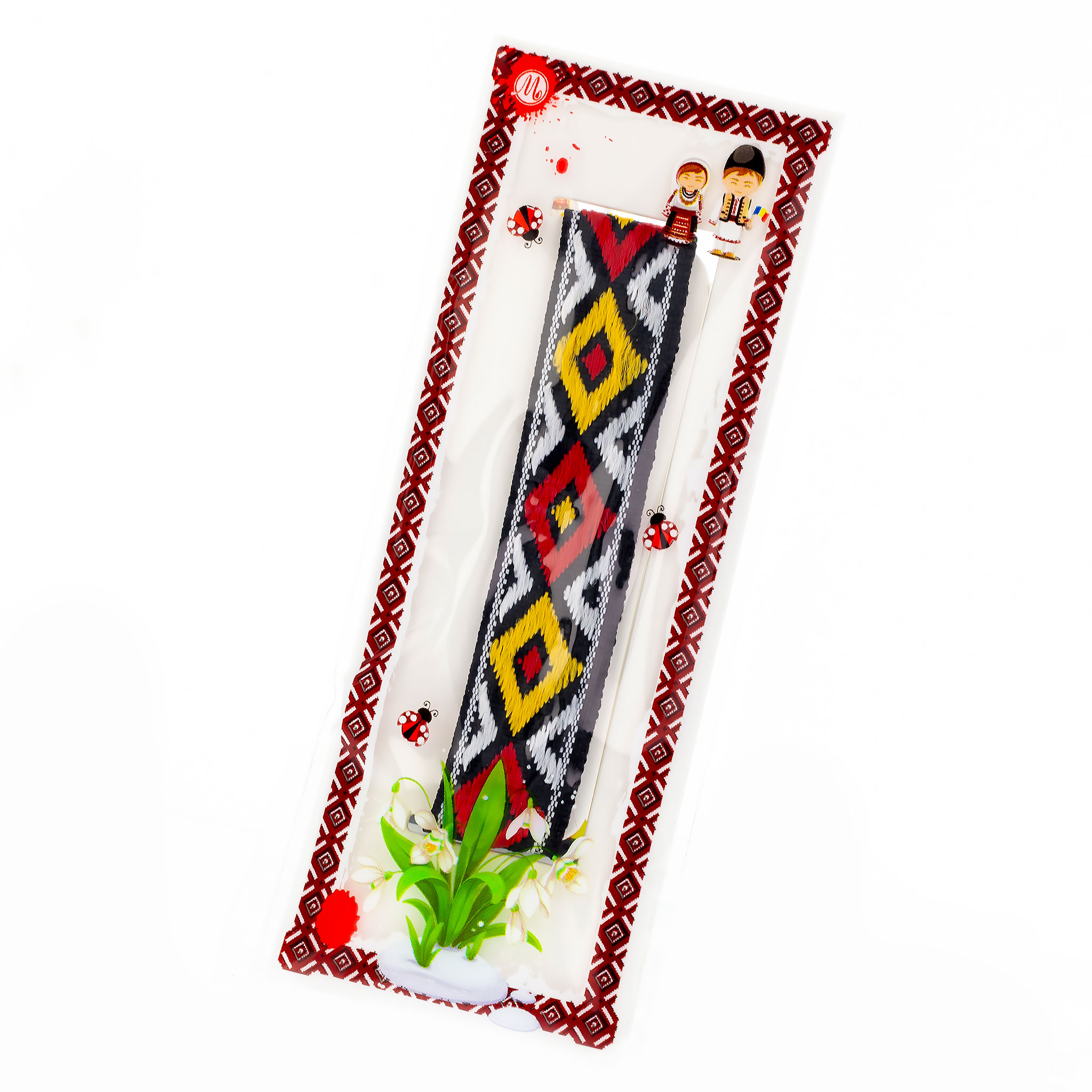 - Brățară Textilă – Model Romburi Galbene și Roșii, ambalată pe suport de carton și plic OPP, pregătită cu grijă pentru a fi oferită drept o expresie simplă și elegantă a afecțiunii sau prieteniei.