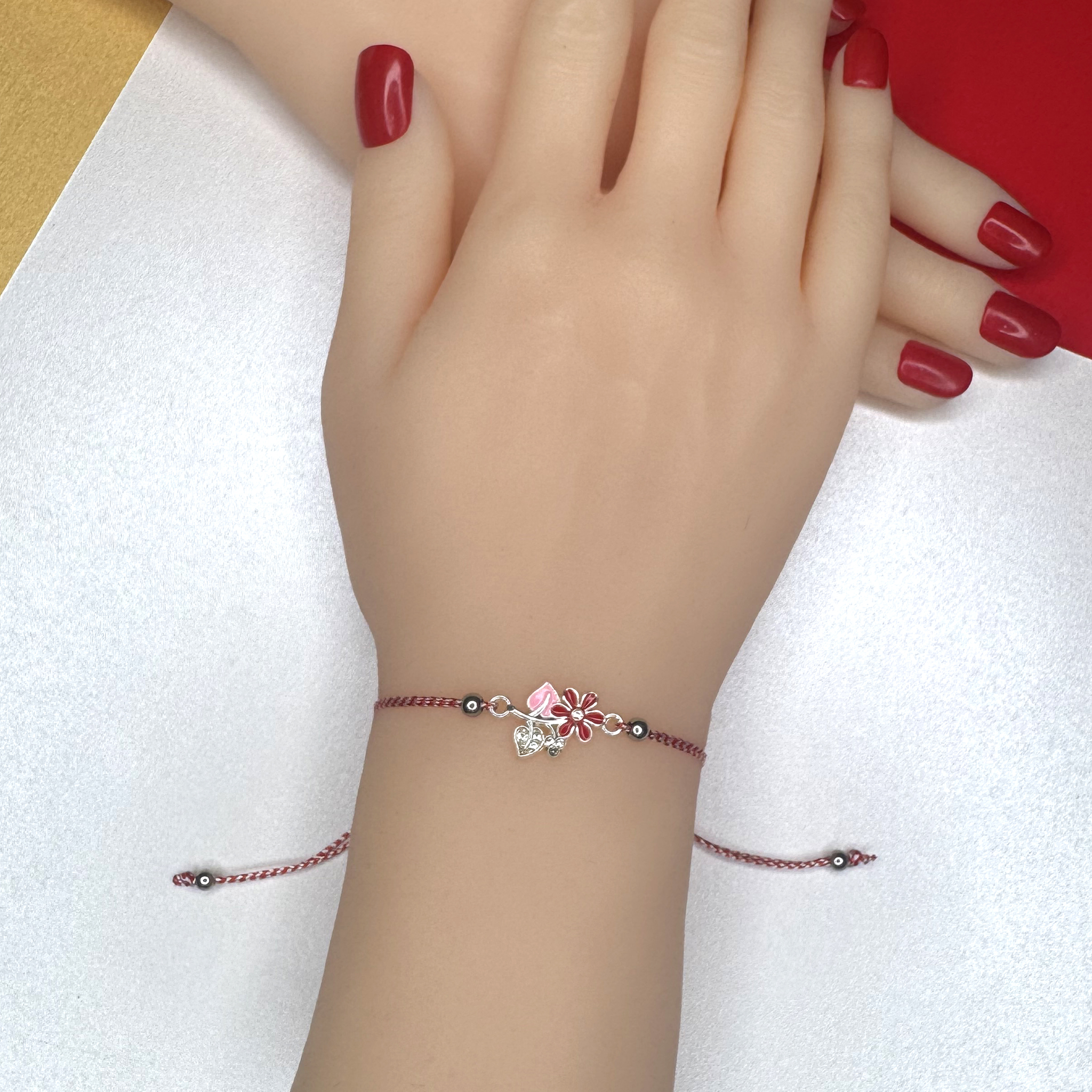 - Floricica roșie simbolizează pasiunea, vitalitatea și emoțiile puternice. În această brățară, ea devine un mic talisman al energiei pozitive și al bucuriei.