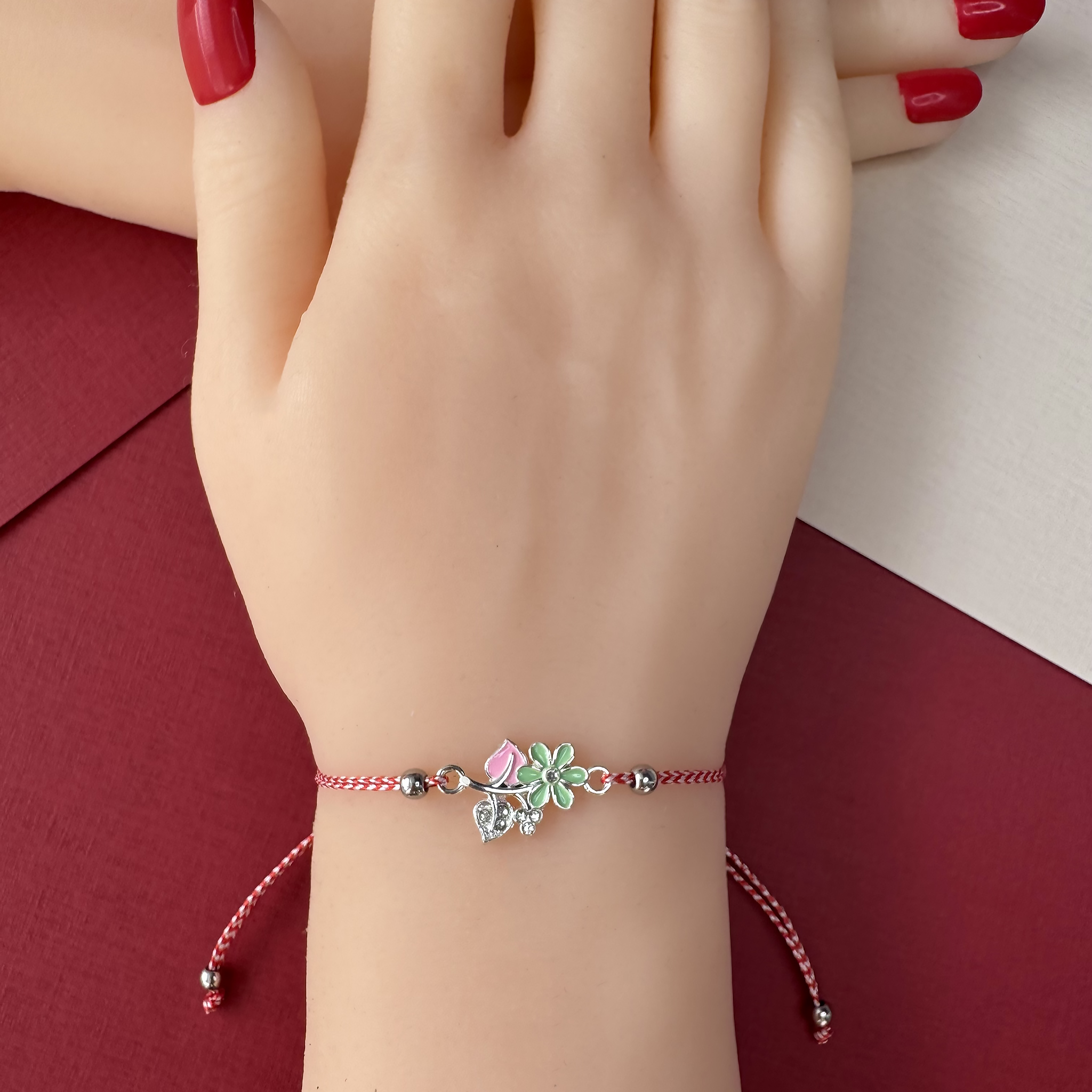 Această brățară Mărțișor este o bijuterie delicată și veselă, care aduce primăvara și prospețimea naturii pe încheietura ta.