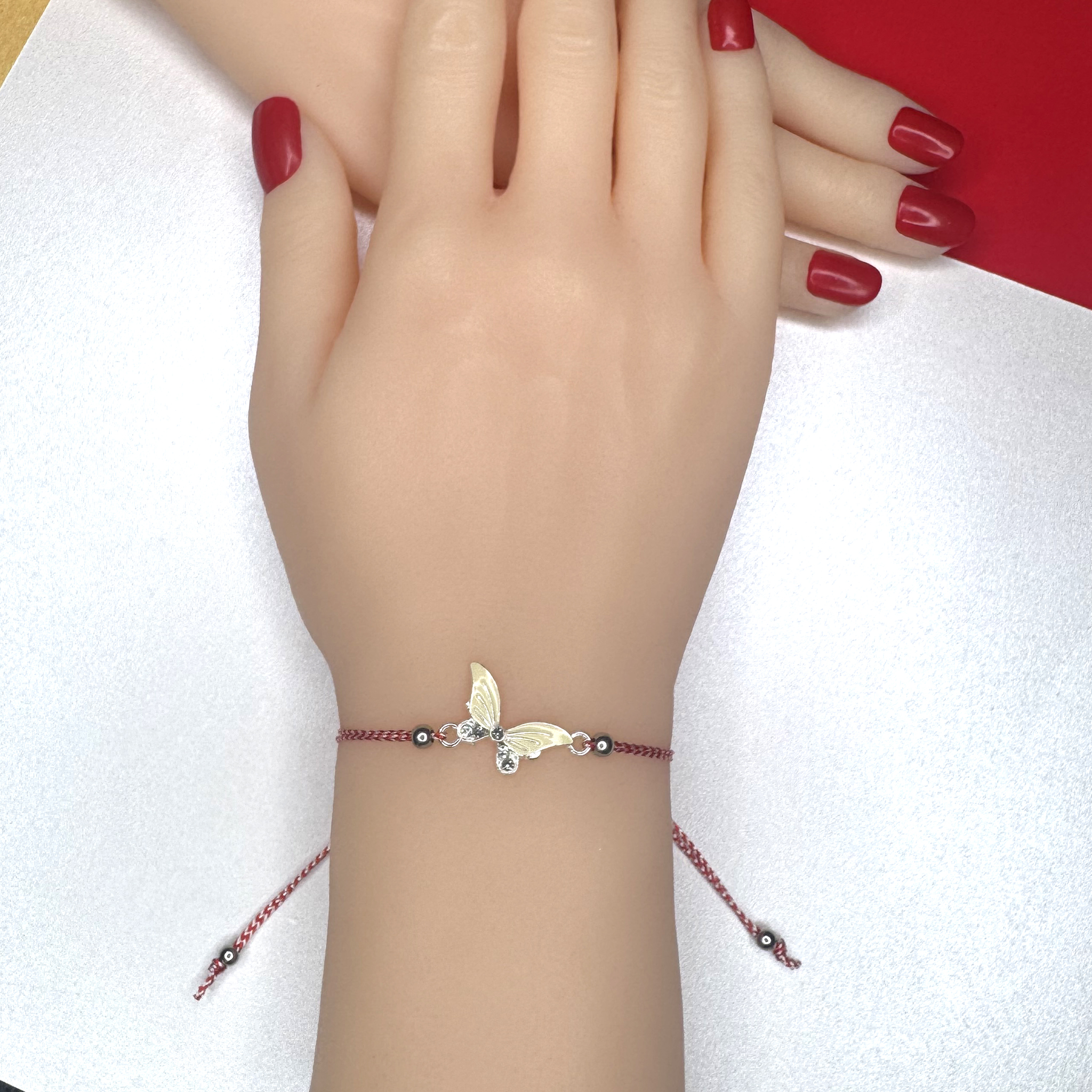 Această brățară îmbină simbolurile primăverii și ale tradiției Mărțișorului prin pandantivul în formă de fluturaș cu aripioare galbene. Firul alb-roșu evocă legătura cu rădăcinile și frumusețea tradiției, iar bijuteria transmite energie pozitivă, optimism și bucuria momentelor împărtășite.
