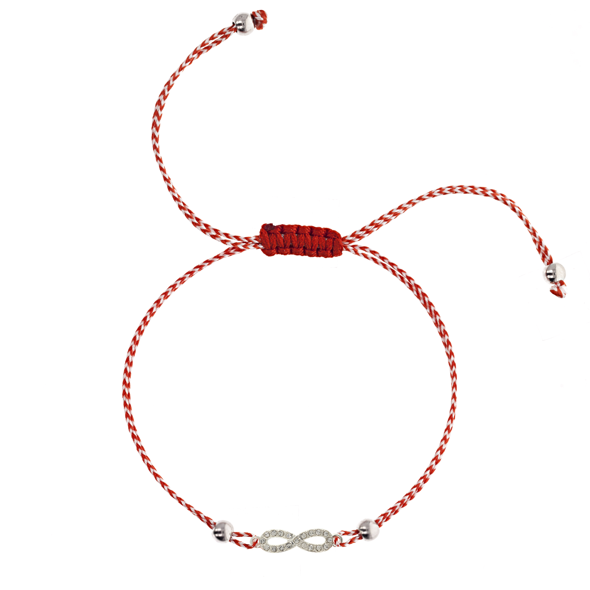 Această brățară combină simbolul eternității cu detalii strălucitoare. Infinitul cu pietricele evocă continuitate, iubire și prietenie durabilă, iar șnurul alb-roșu completează designul printr-o notă tradițională. Este un accesoriu rafinat, plin de semnificație, menit să inspire emoție și bucurie purtătorului.