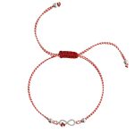 - Material: Fir textil alb-roșu, pandantiv infinit și buburuză din metale comune;