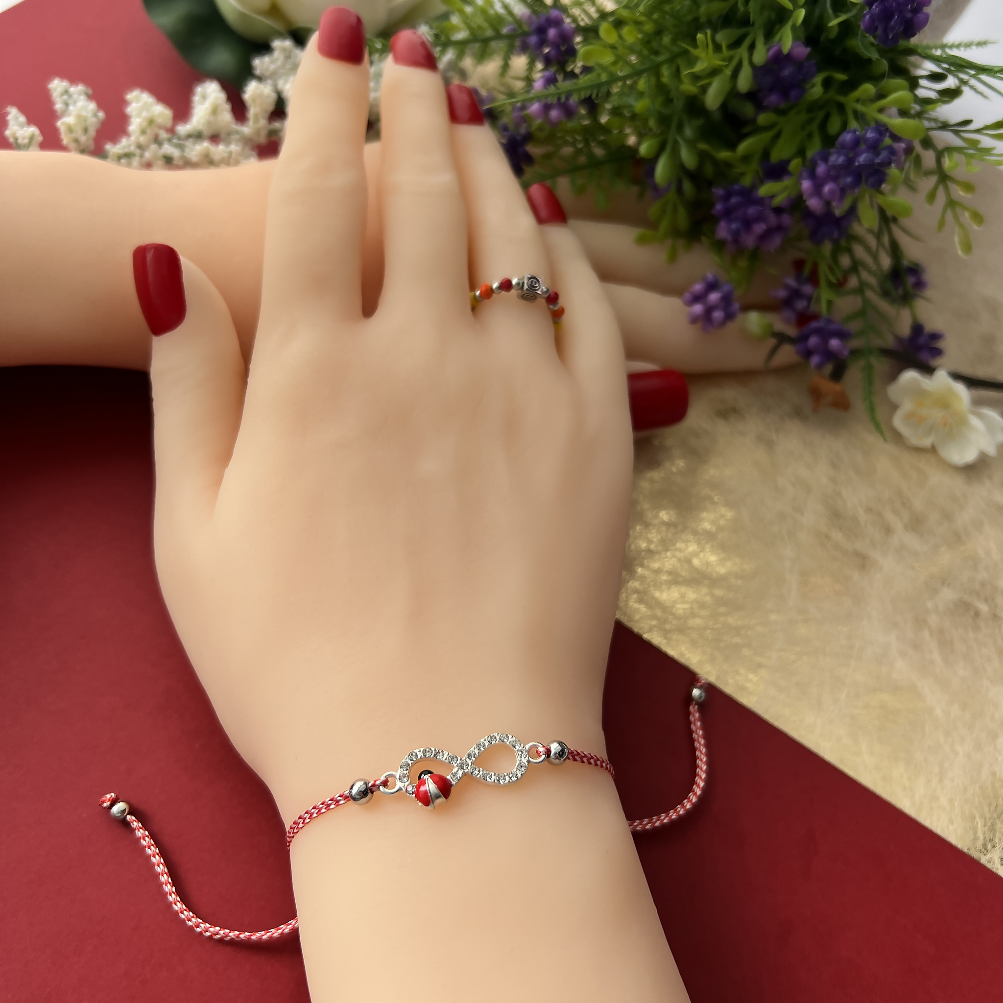 - Infinitul reprezintă eternitatea și adaugă profunzime și semnificație brățării, iar buburuza completează simbolismul bijuteriei cu o notă de optimism și veselie.