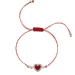 Brățară Șnur Roșu Alpha White Palladium Inimă
