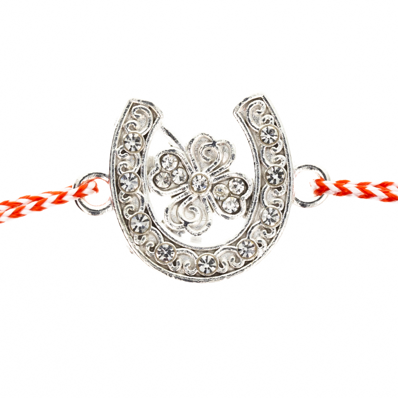 Această brățară Mărțișor este o bijuterie plină de simbolism și energie pozitivă, care aduce împreună tradiția firului alb-roșu și talismanul norocului, potcoava cu trifoi.