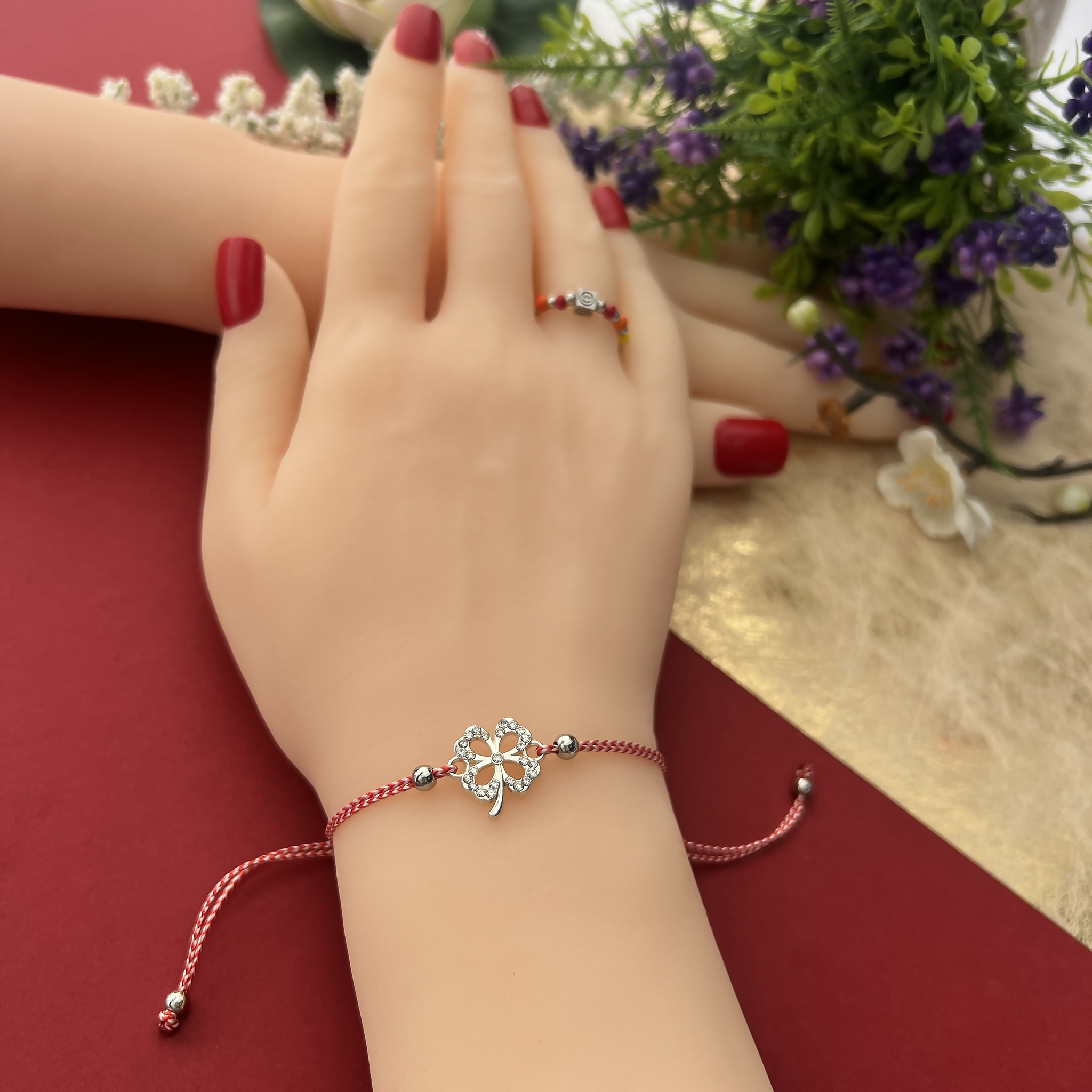 - Această brățară Mărțișor cu pandantiv în formă de trifoi și șnur alb-roșu este un cadou minunat pentru a celebra tradiția Mărțișorului și pentru a oferi cuiva drag o expresie a frumuseții tradiționale și a sentimentelor profunde. Poate fi purtată cu mândrie nu doar în timpul sărbătorii Mărțișorului, ci și în orice altă ocazie specială.
