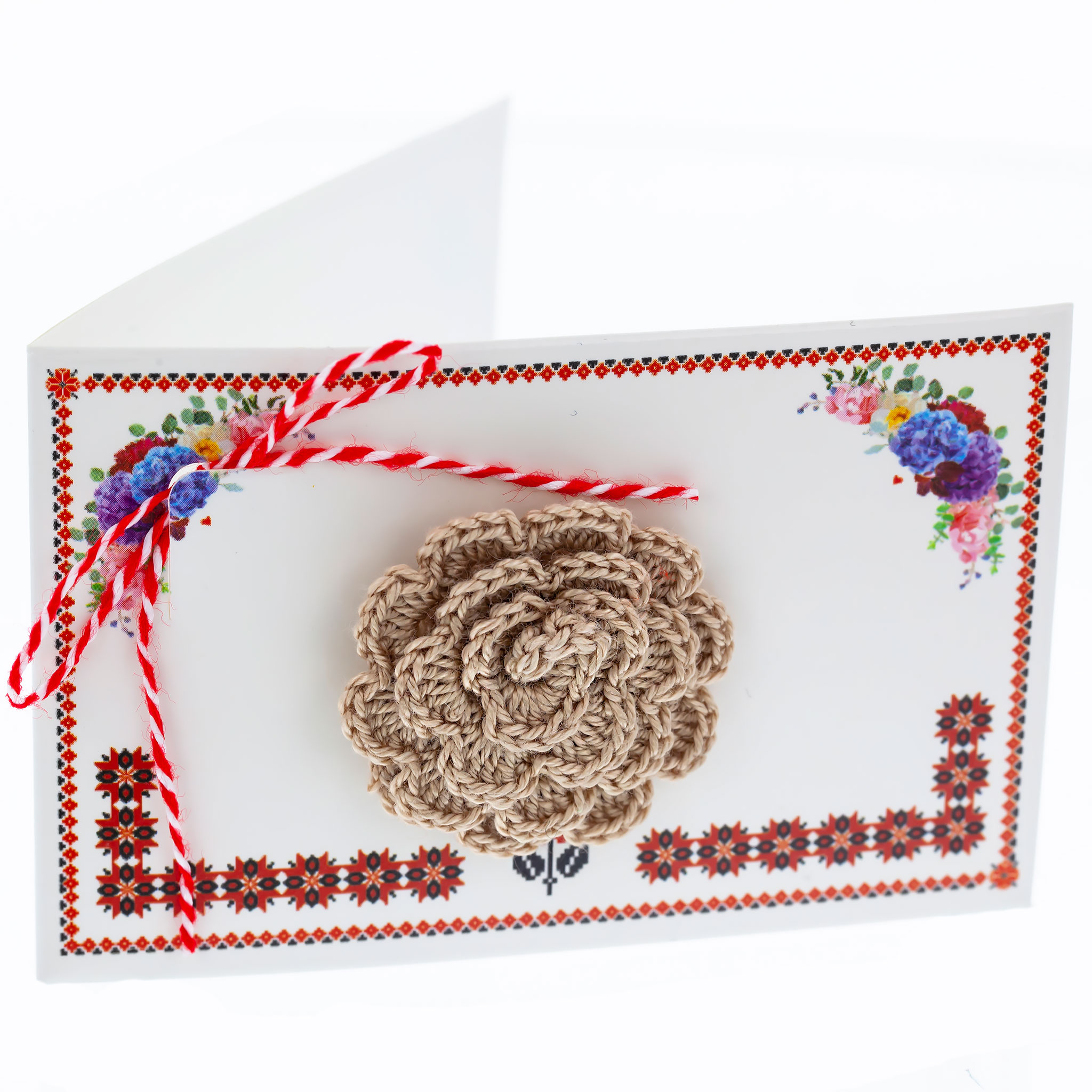 - Design: Broșa Mărțișor este croșetată manual în forma unui trandafir, sugerând delicatețe și eleganță. Fiecare petală este atent conturată, creând un aspect detaliat și realist. Broșa este unică, datorită procesului manual de croșetare. Această unicitate adaugă valoare sentimentală și estetică bijuteriei, făcând-o o piesă deosebită în colecția oricărei persoane