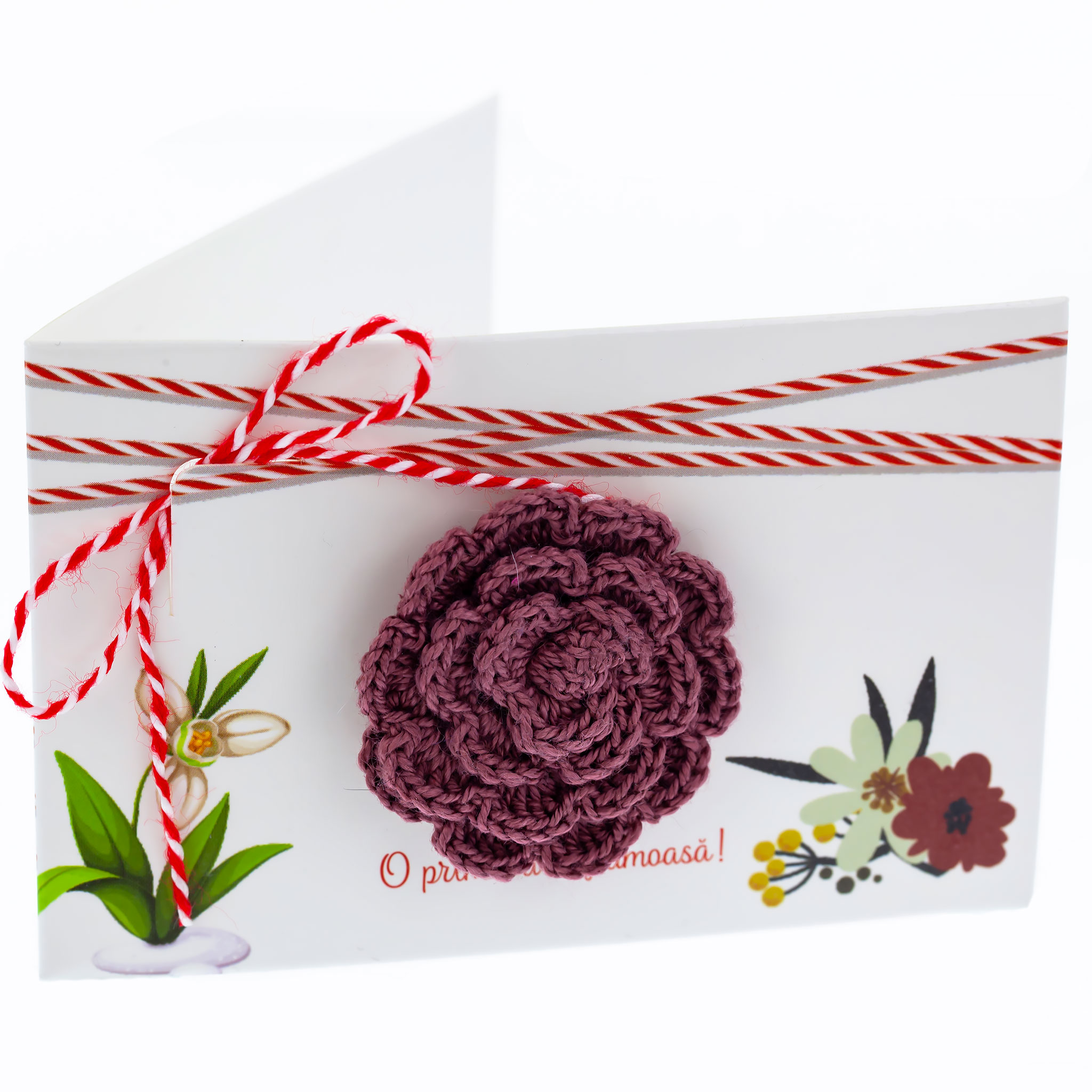 - Broșă Mărțișor Hand-Made Trandafir Cărămiziu, șnur Marțișor alb-roșu, însoțită de suport pentru broșă, creată cu dragoste și dedicare pentru a fi oferită ca un cadou special, simbol al tradiției.