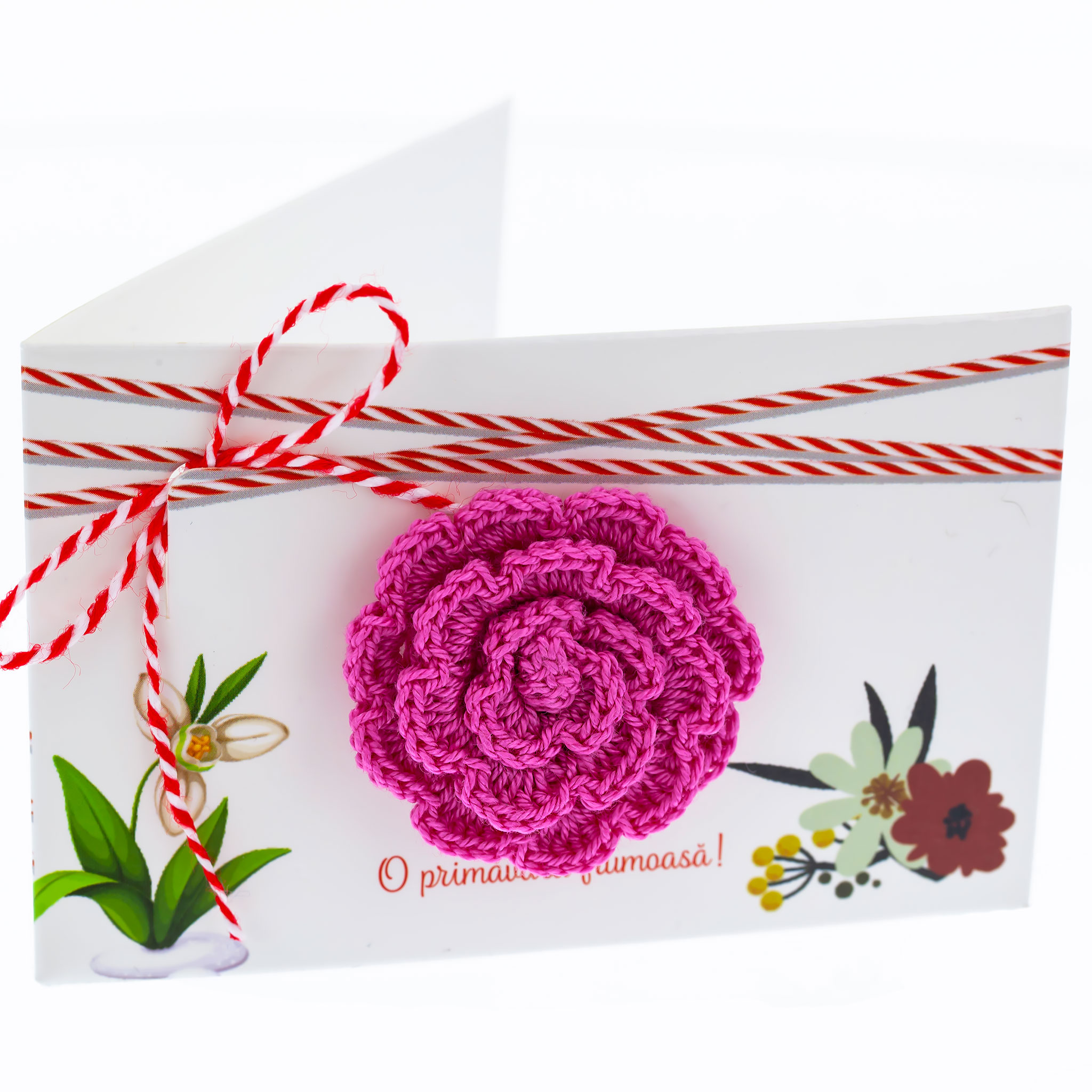 - Broșă Mărțișor Hand-Made Trandafir Roz Închis, șnur Marțișor alb-roșu, însoțită de suport pentru broșă, creată cu dragoste și dedicare pentru a fi oferită ca un cadou special, simbol al tradiției.
