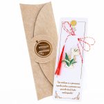 - Ambalaj: Plic și suport de carton pentru broșă cu mesaj de primăvară, confecționat din hârtie premium.