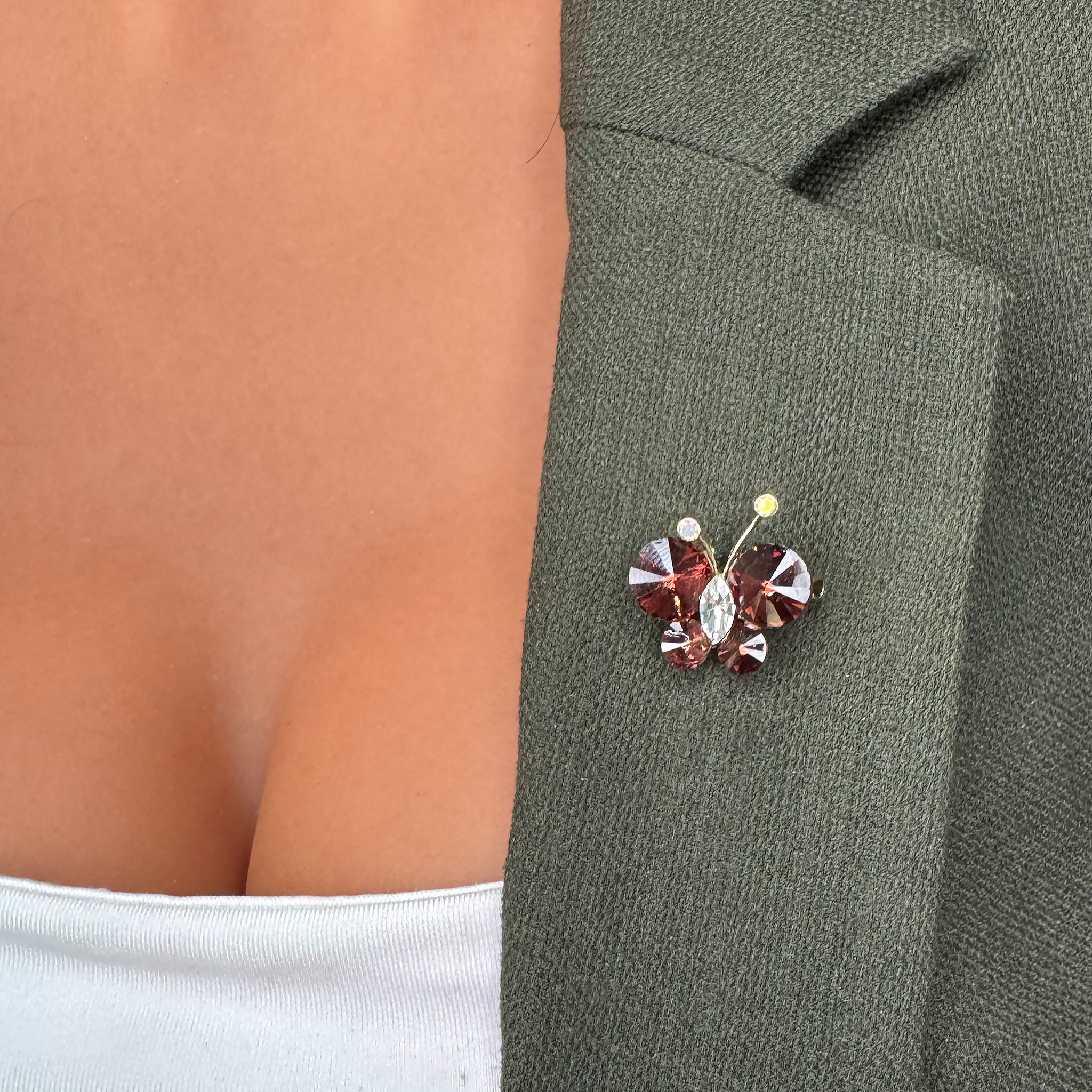 Această broșă în formă de fluture este un simbol al libertății și al transformării, aducând un strop de eleganță și prospețime. Cu un design delicat și detalii atent lucrate, fluturele reprezintă schimbările pozitive și renașterea naturii. Acest accesoriu rafinat emite un mesaj de speranță și începuturi noi, fiind ideal pentru a celebra primăvara și energia vibrantă a acestui sezon.