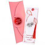 - Broșă Mărțișor Luna Fundiță Argintie cu Perluță, șnur Marțișor alb-roșu, însoțită de suport pentru broșă, plic roz, pregătită cu grijă pentru a fi oferită ca un cadou special, simbol al tradiției.