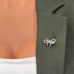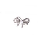Această broșă emană o aură de rafinament și eleganță, potrivită pentru a evidenția frumusețea și feminitatea într-un mod subtil și rafinat. Cu designul său în formă de fundă și strălucirea pietrelor, transmite un aer sofisticat și clasic, fiind potrivită pentru ocazii speciale sau pentru a sublinia eleganța unei ținute.