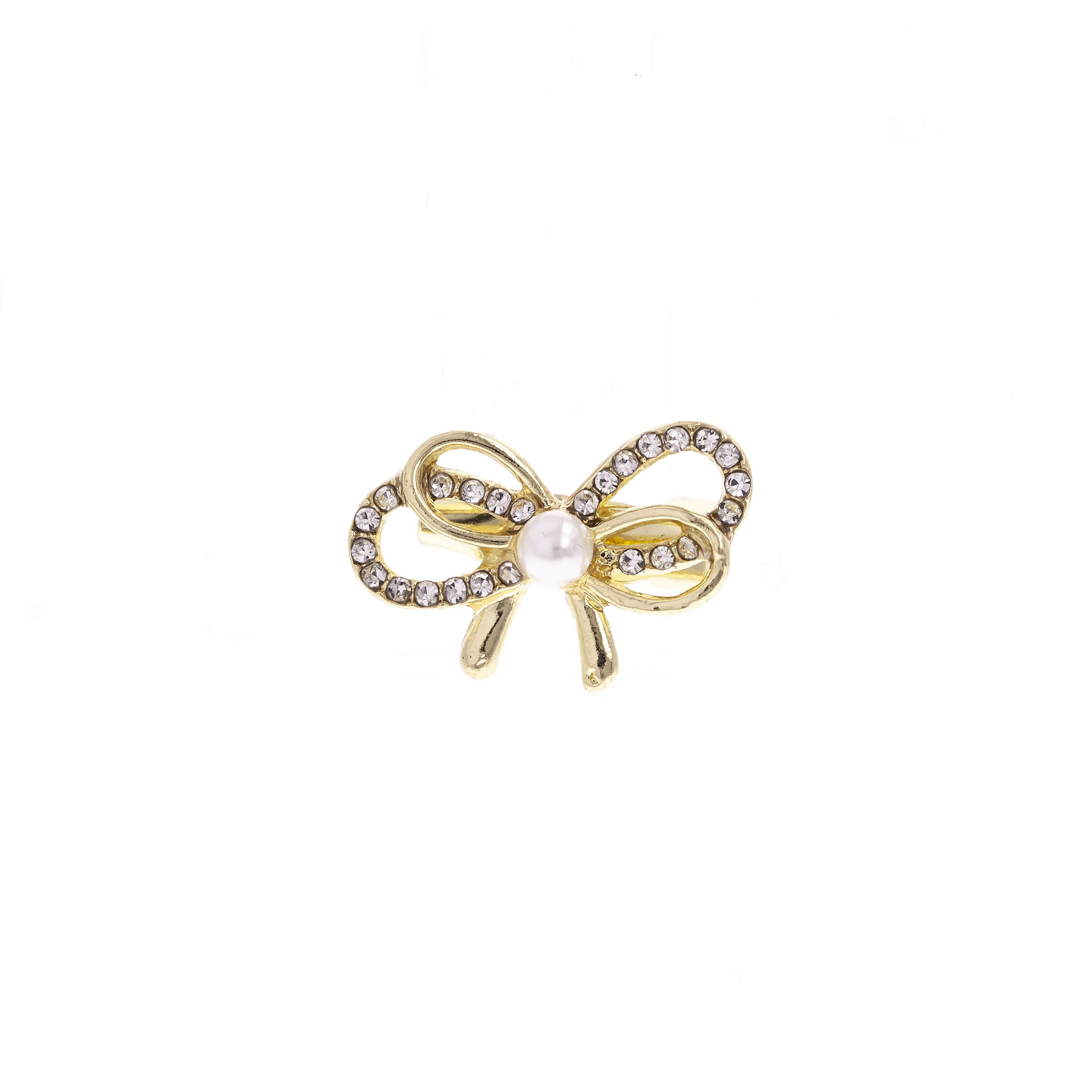 Broșa în formă de fundiță aurie cu perluță este un simbol al delicateții și al eleganței clasice. Cu strălucirea sa aurie și accentele rafinate oferite de perluță, broșa transmite feminitate și armonie fiind un accesoriu care completează cu stil orice ținută.