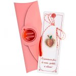 - Broșă Mărțișor Luna Inimă Aurie cu Frunză, șnur Marțișor alb-roșu, însoțită de suport pentru broșă, plic roz, pregătită cu grijă pentru a fi oferită ca un cadou special, simbol al tradiției.