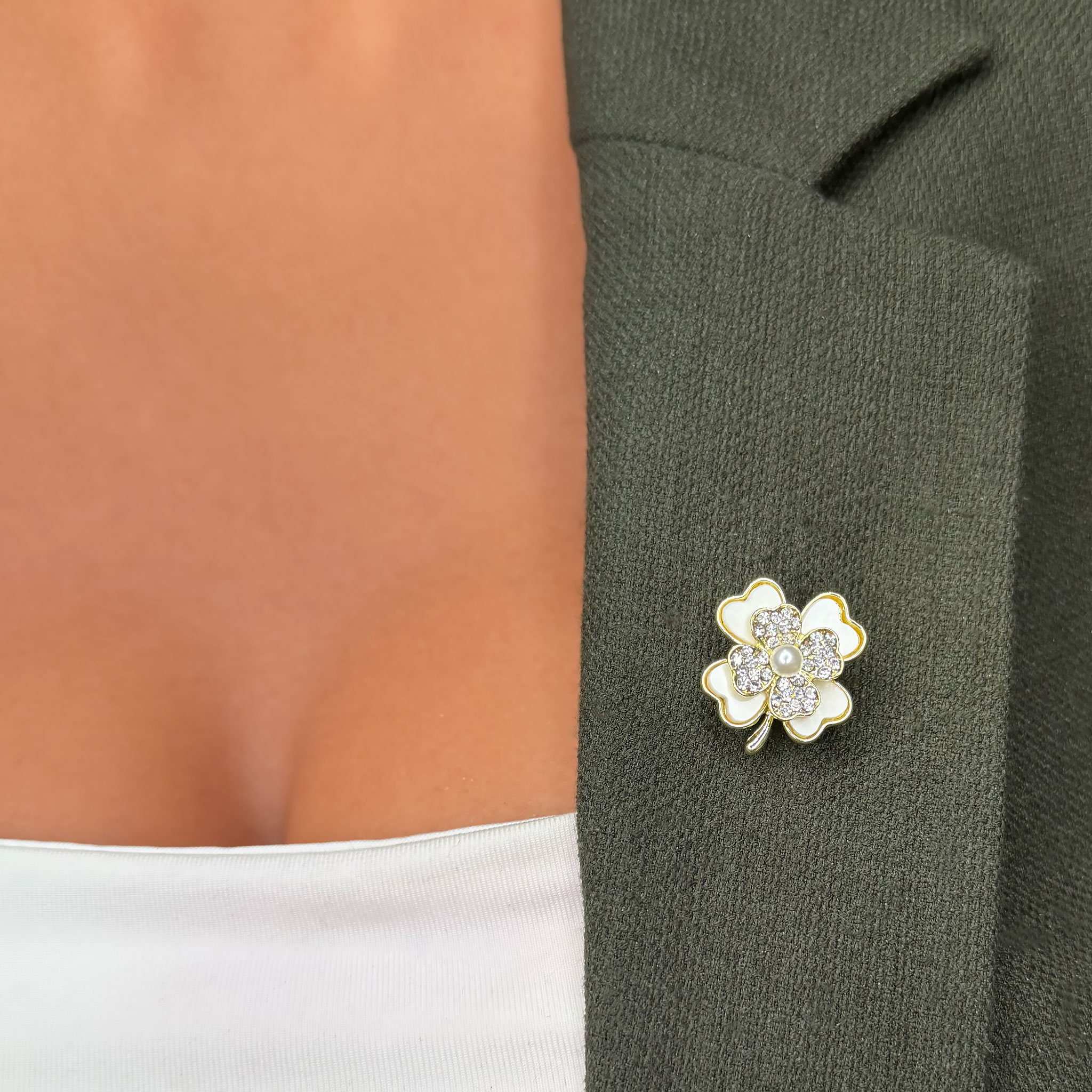 Această broșă în formă de trifoi este un simbol al norocului și al prosperității, aducând cu sine un mesaj de speranță. Cu un design elegant și detalii fine, trifoiul reprezintă legătura cu natura și energia pozitivă, fiind un cadou perfect pentru a celebra începuturile noi și momentele de bucurie. Această bijuterie delicată este ideală pentru a adăuga un strop de noroc și frumusețe în viața celor dragi.