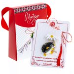 - Broșă Mărțișor Gentuță Arici Vesel, șnur Marțișor alb-roșu, ambalată în cutie tip gentuță, pregătită cu grijă pentru a fi oferită drept simbol al tradiției și al frumuseții primăverii.